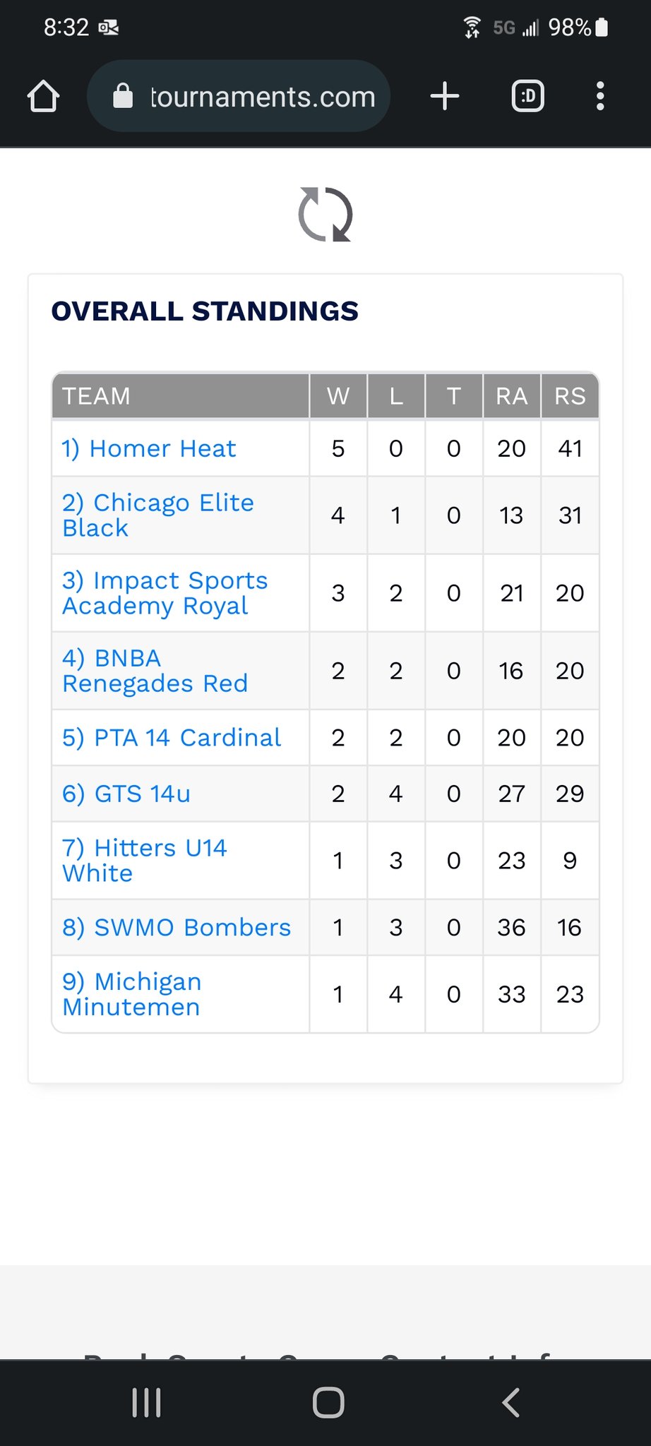 . Homer Heat 10 Yellowjackets 3. Tournaments Location Organization GG Start Date End Date Age Group. 11 Tristan Sola RF RR CF 14 Julian Marquez 1B RR RHP 23.