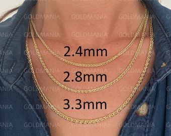 14k Yellow Gold Round Wheat Chain Necklace 16 18 Etsy Uk